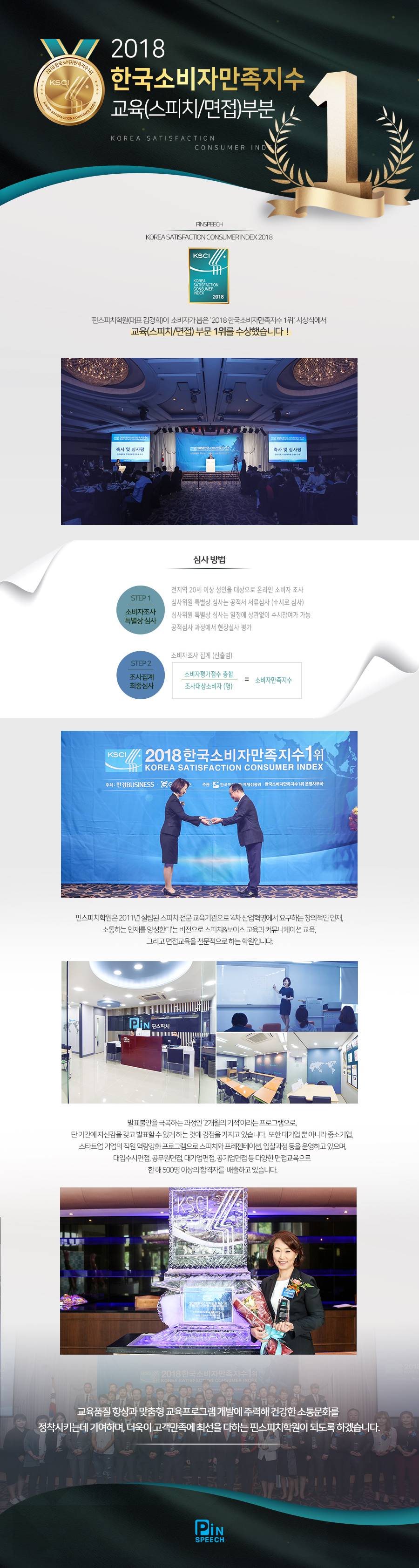 2018 한국소비자만족도1위 - 스피치·면접 교육부문 1위 선정