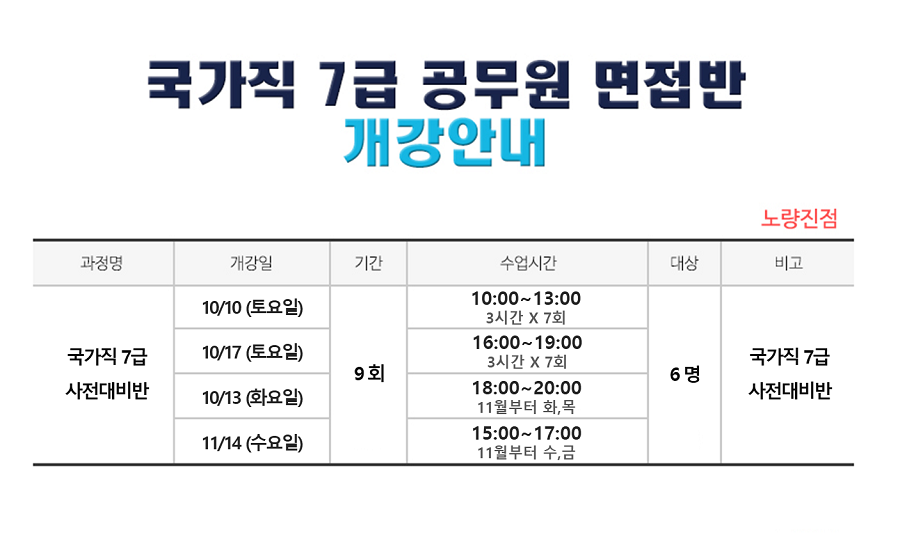 [ 10월개강 ] 국가직 7급 면접과정