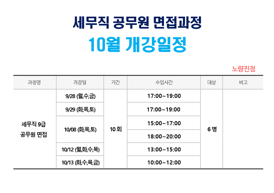 [ 10월개강 ] 세무직 9급 면접과정