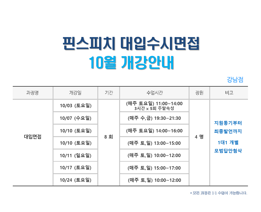 [ 10월개강 ] 대입수시면접 정규과정