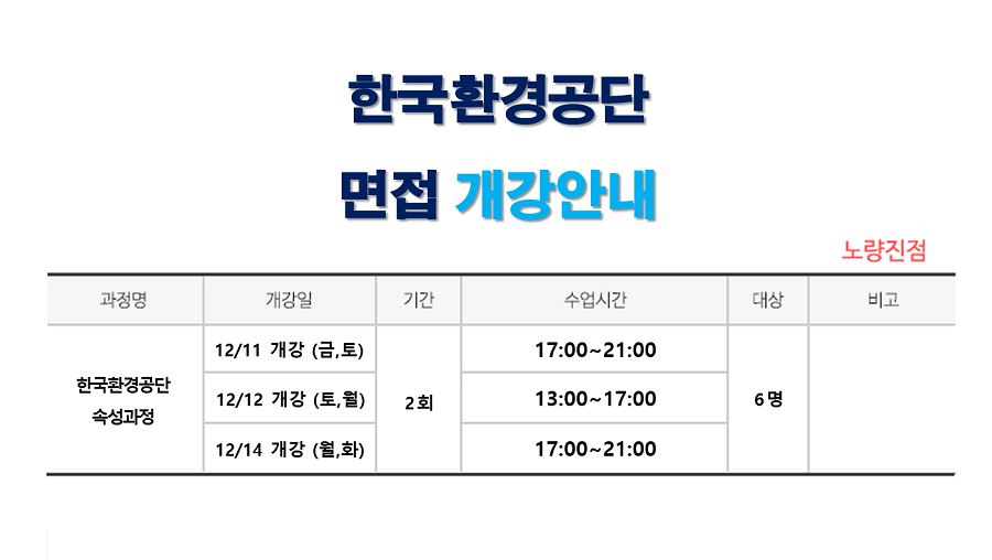 [ 12월개강 ] 한국환경공단 면접과정