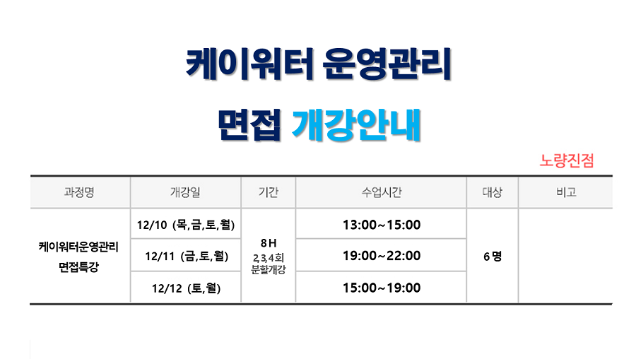 [ 12월개강 ] 케이워터운영관리 면접과정