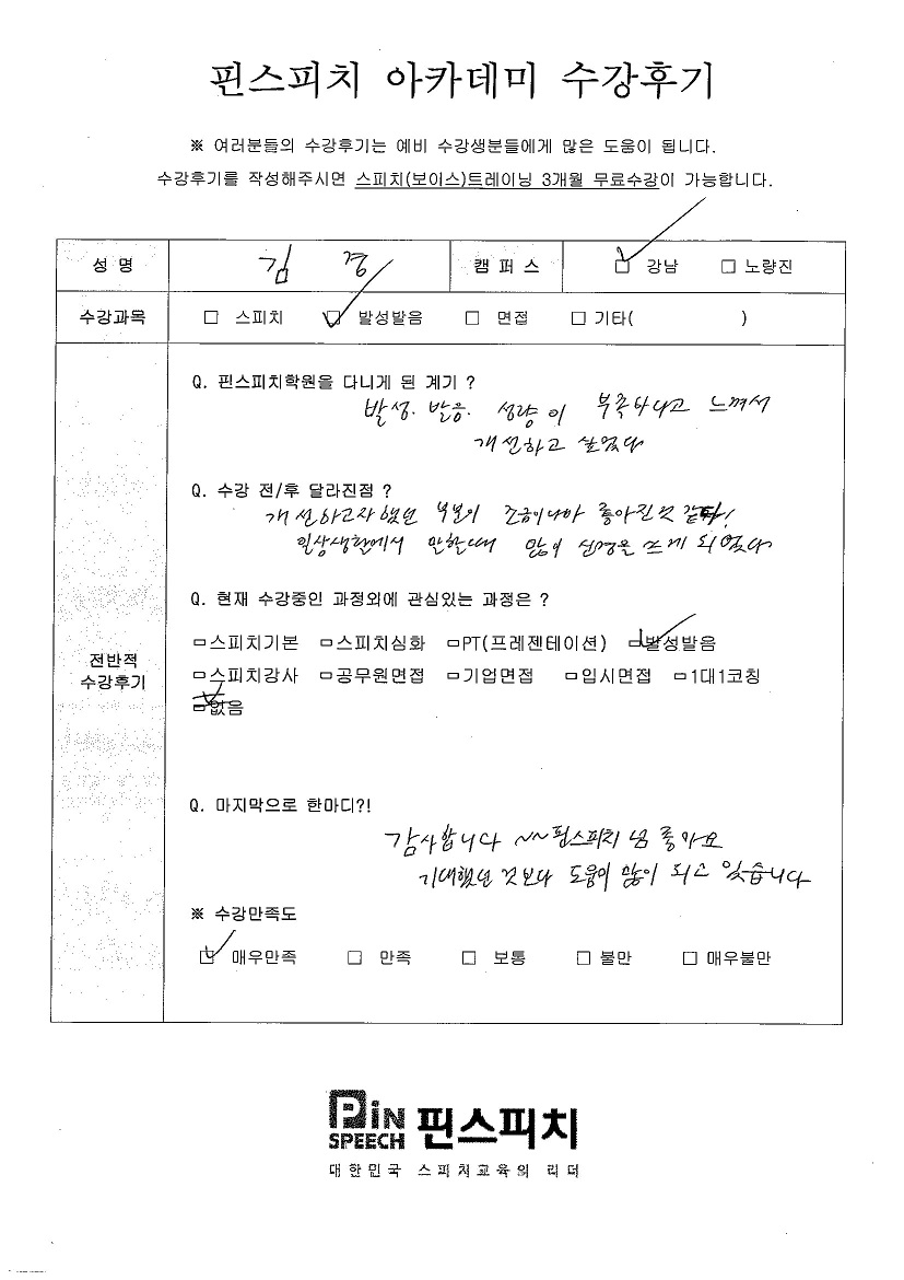 발음, 발성, 성량이 부족했는데 개선되었습니다.