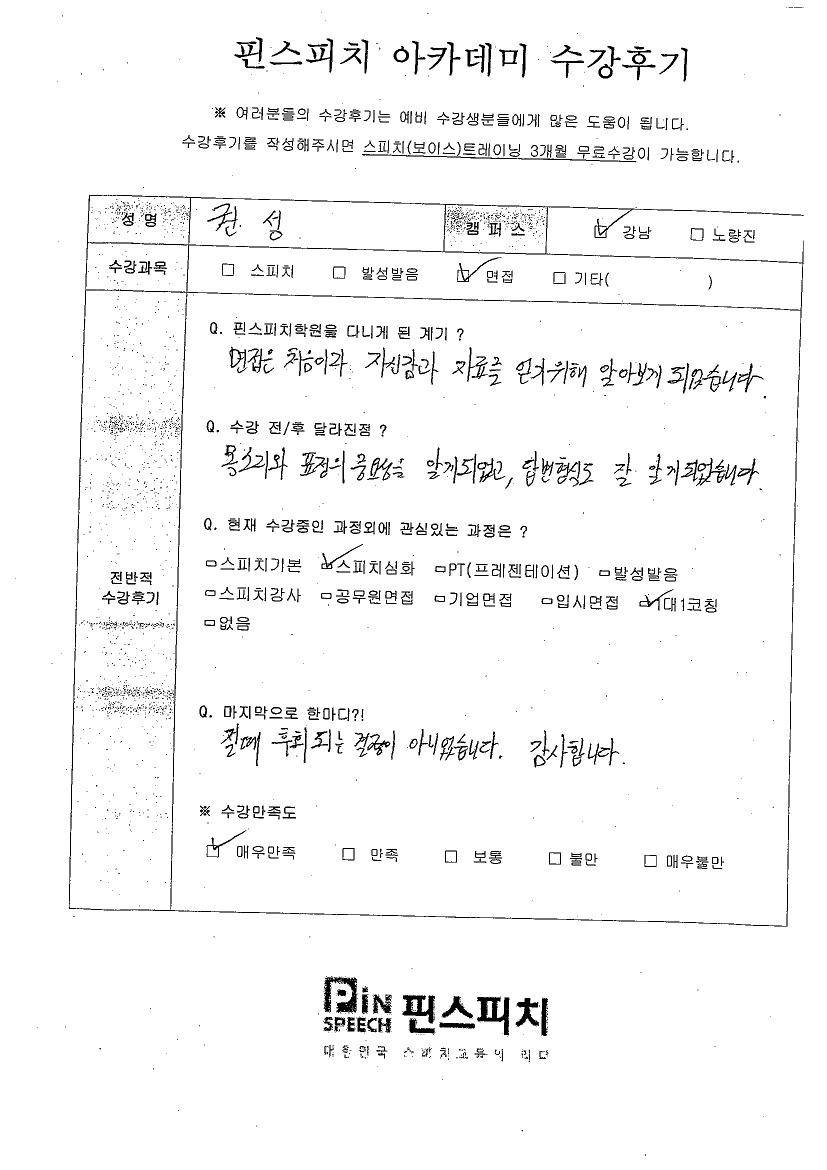 목소리와 표정의 중요성을 알게 되었고, 답변형식도 잘 알게 되었습니다.