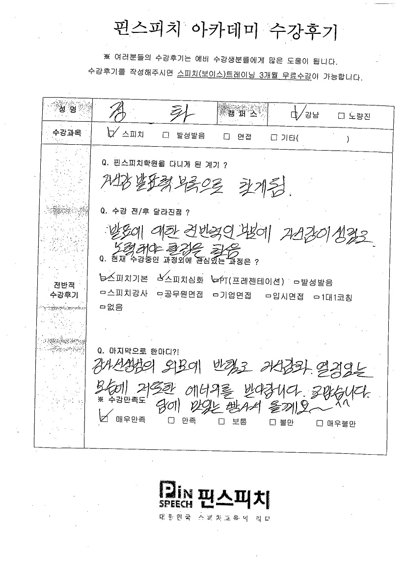 발표에 대한 전반적인 부분에 자신감이 생겼습니다.