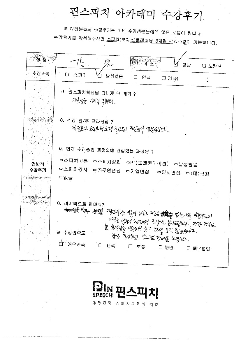 자신감이 없었던 저를 바뀌게 해주셔서 진심으로 감사드립니다.