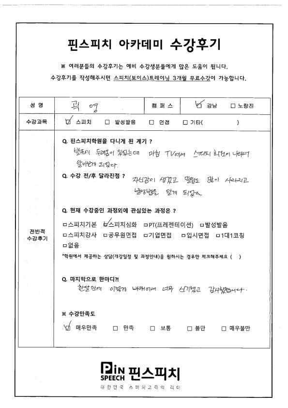 자신감이 생겼고 발성방법을 알게 되었습니다.