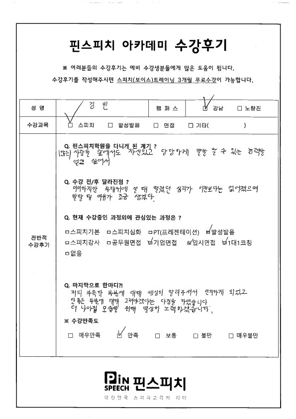 수업을 듣고 사람들 앞에서 구조적으로 이야기 할 수 있게 되었습니다.