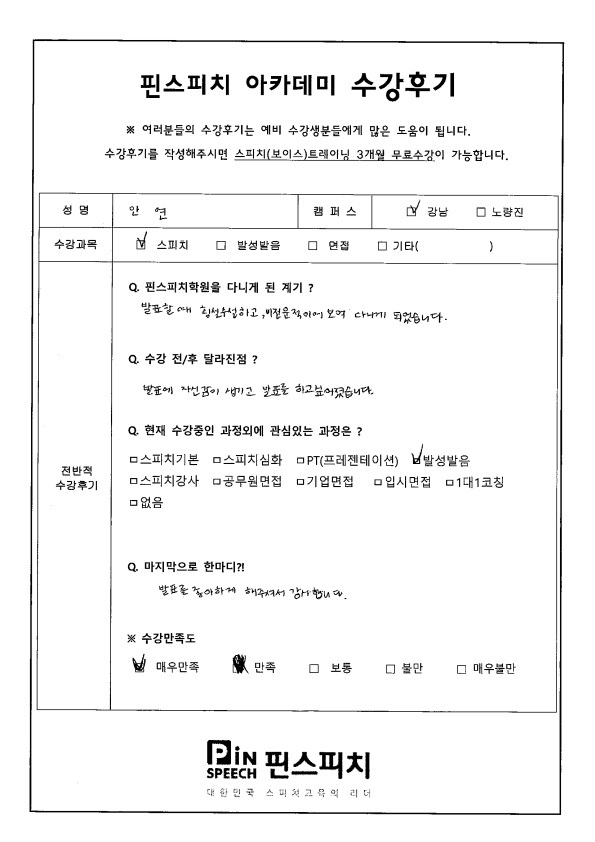 발표할 때 횡설수설하고 비전문적인 모습때문에 수강하게 되었고 이제는 발표를 하고 싶어졌습니다.