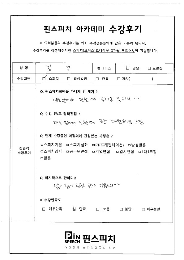 대중 앞에서 말할 때 대범해짐을 느꼈습니다.