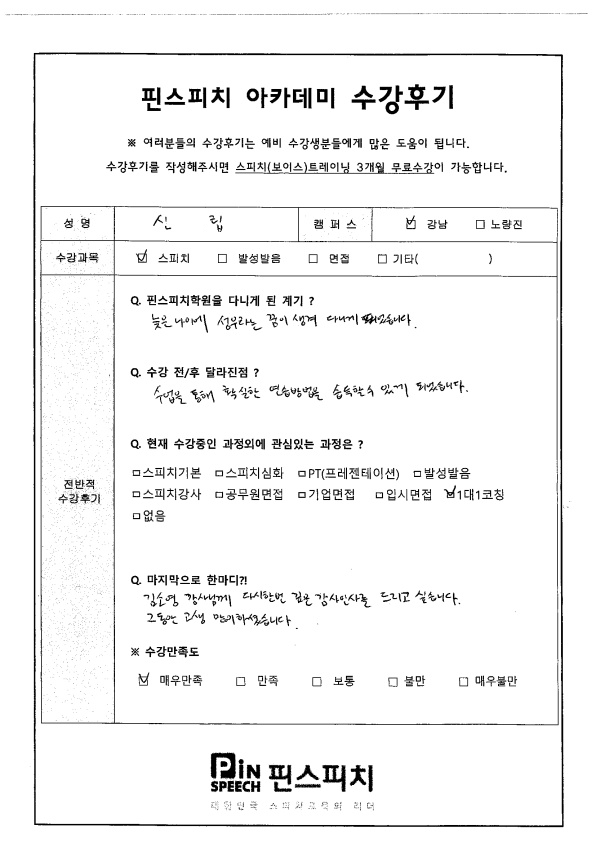 수업을 통해 확실한 연습방법을 습득할 수 있었습니다.