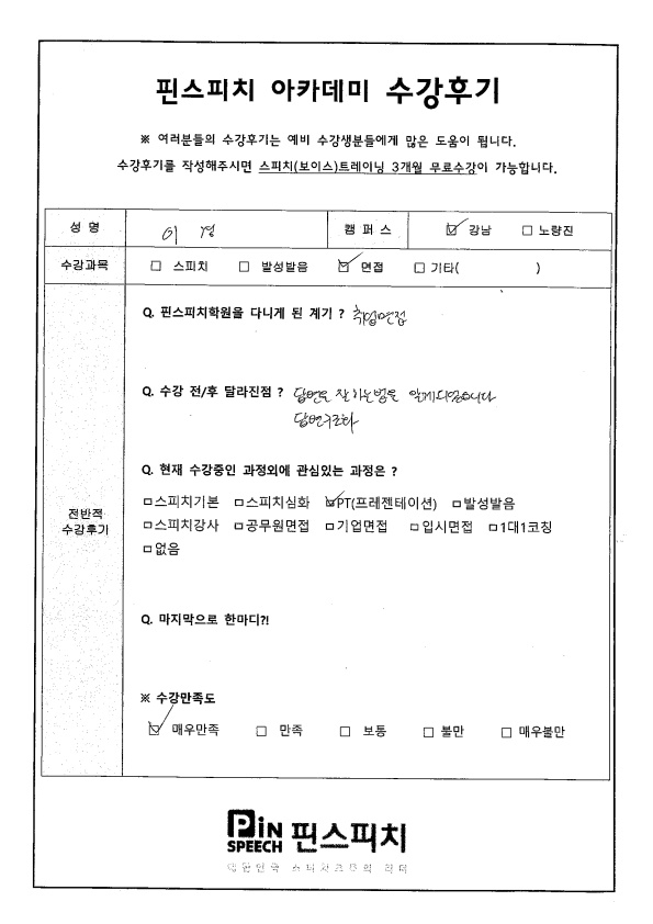 면접에서의 답변 구조화 방법을 알게 되었습니다.
