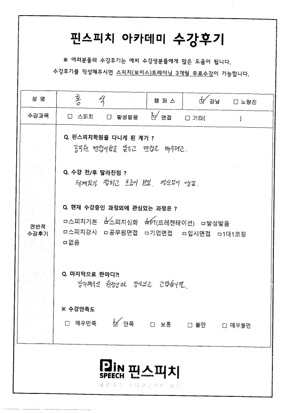 면접시험에 보다 자신감있게 임하게 되었습니다!