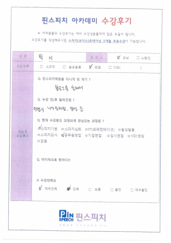 면접때의 문제점들과 발성에서 큰도움을 받았습니다!