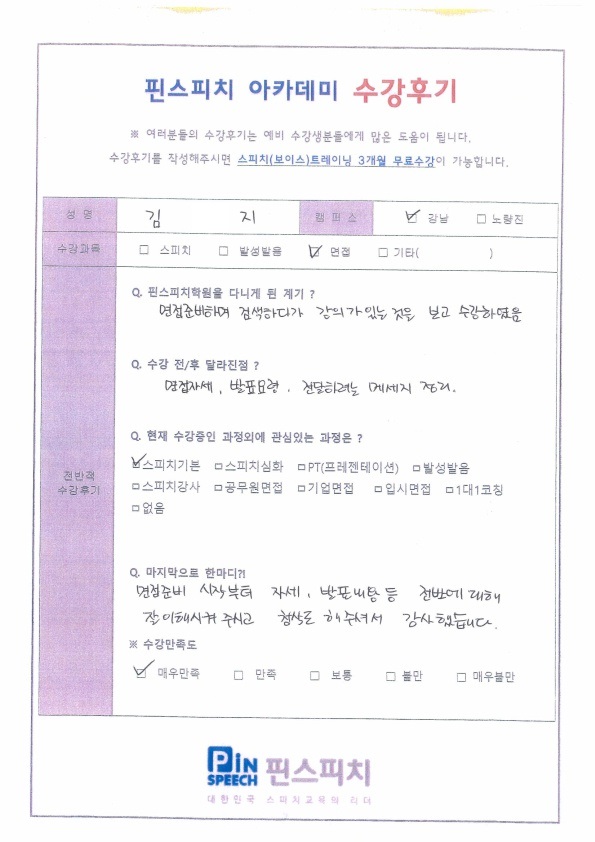 면접자세, 발표요령, 전달하려는 메세지가 정확히 정리되었습니다!
