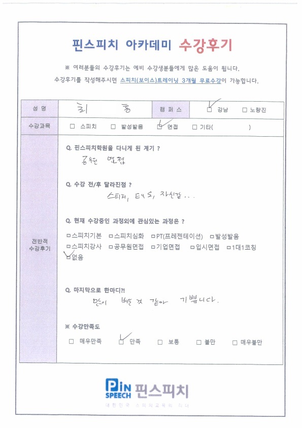 스피치, 태도에 대해 많이 배웠고 자신감이 생겼습니다!