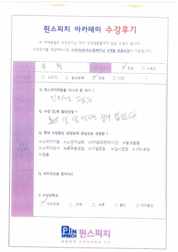 면접에서 많이 떨었는데 그 점이 개선되었습니다!