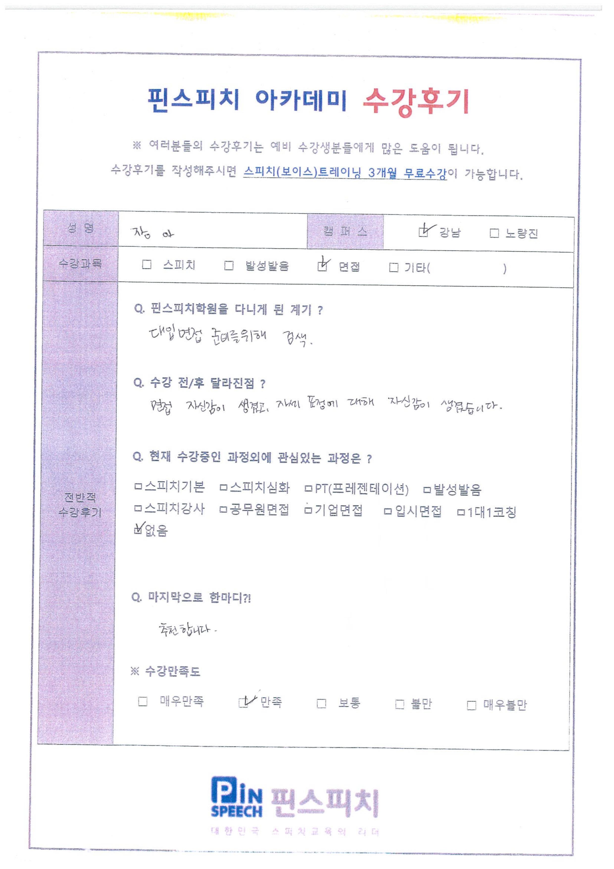 면접 자신감이 생겼고, 자세 표정에 대해 자신감이 생겼습니다.