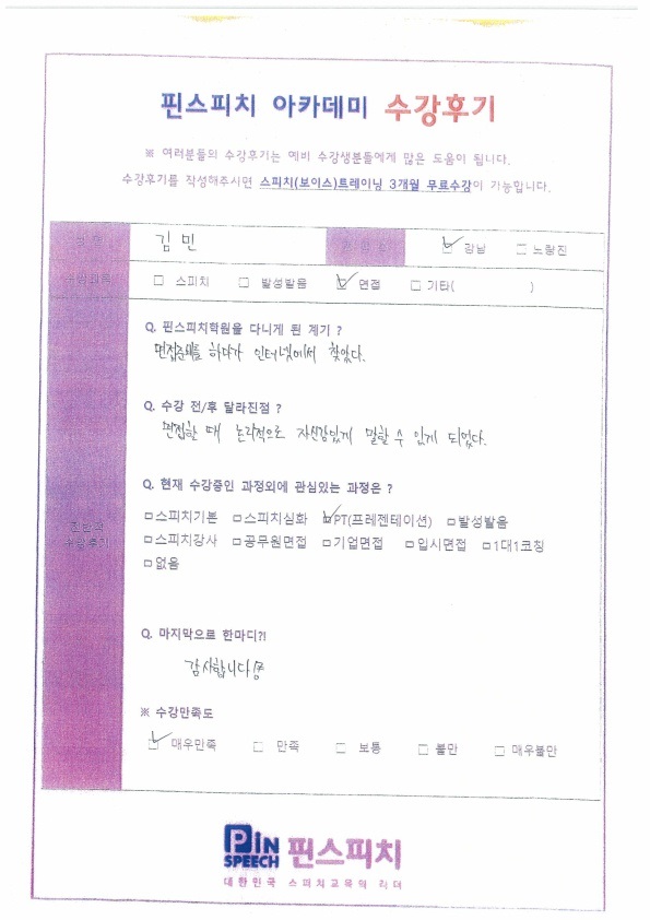면접할 때 논리적으로 자신감있게 말할 수 있게 되었습니다!