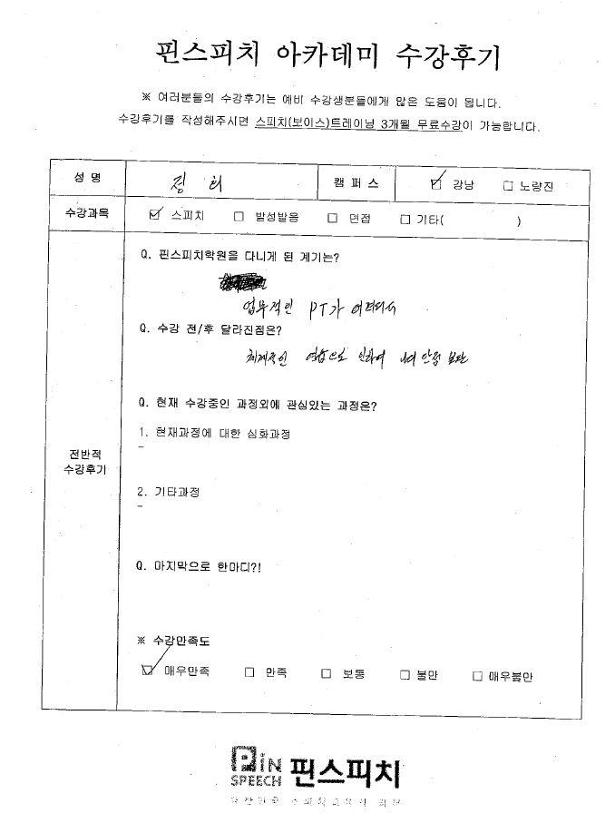 체계적인 연습으로 인하여 나의 단점이 보완되었습니다