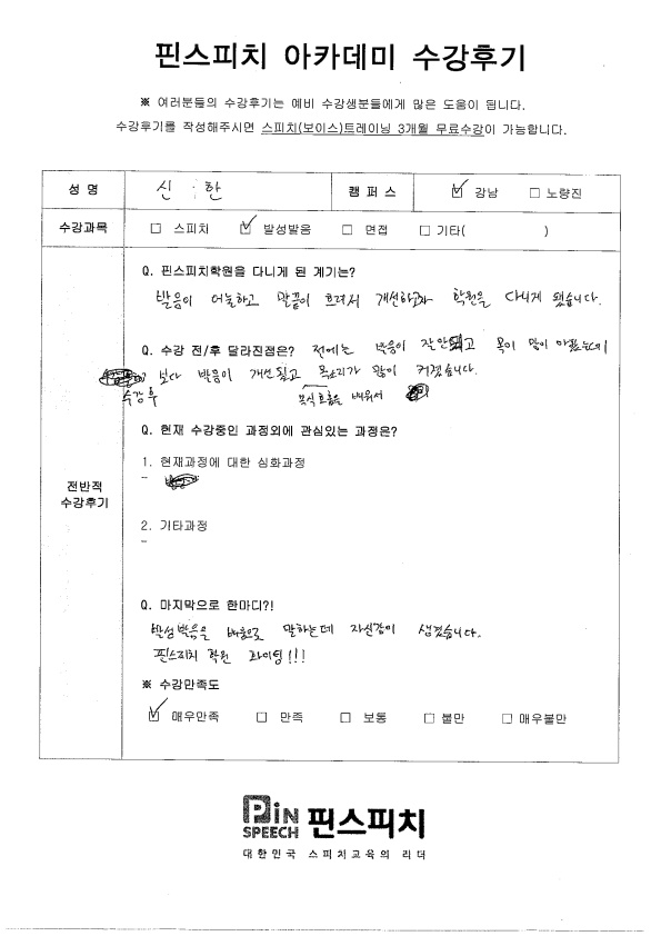 발성발음을 배움으로 말하는데 자신감이 생겼습니다.