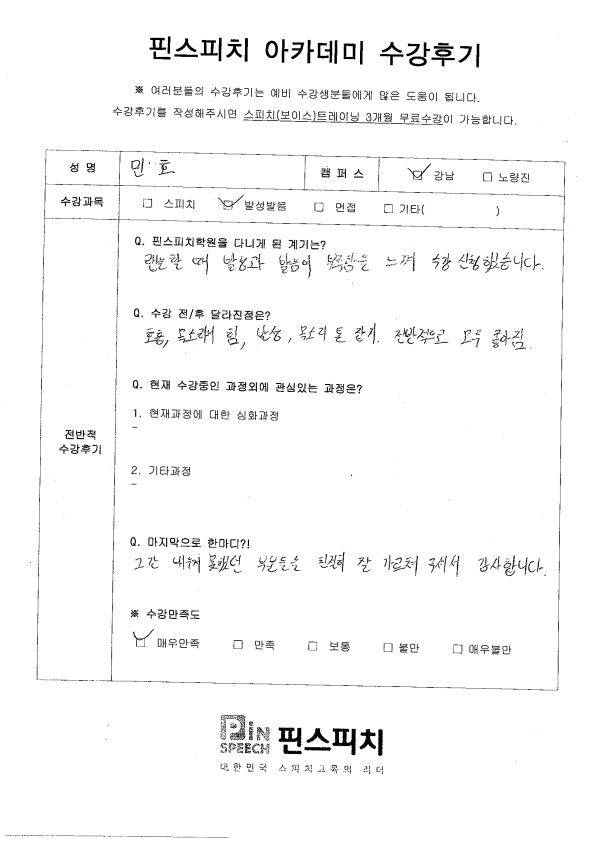 호흡, 목소리의 힘, 발성, 목소리 톤 잡기 전반적으로 모두 좋아짐