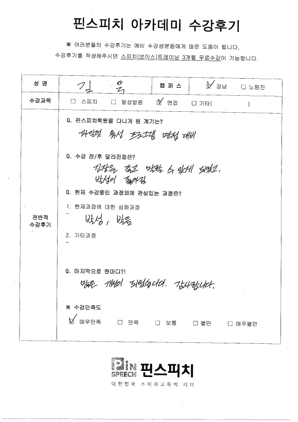 긴장을 풀고 말할 수 있게 되었고, 발성이 좋아짐