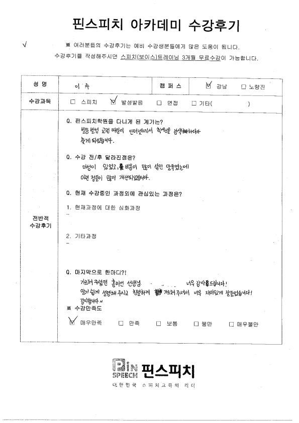 아성이 있었고 비음이 많이 섞인 말투였는데, 이런 점들이 많이 개선되었습니다.
