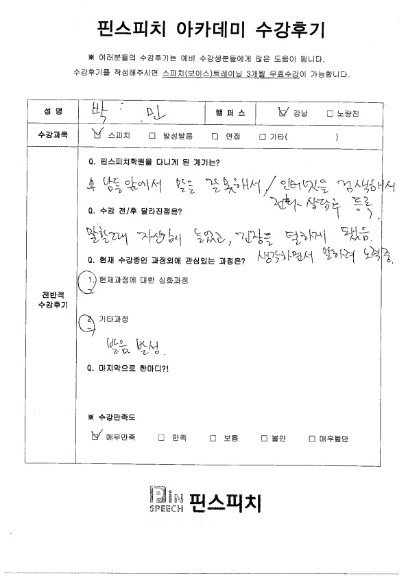 말할 때 자신감이 늘었고, 긴장을 덜하게 됐음