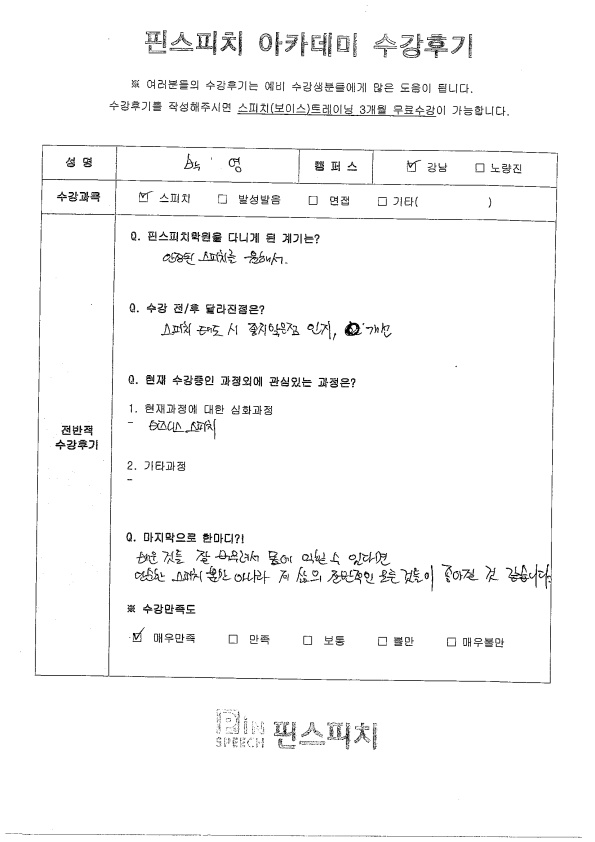 단순한 스피치 뿐만 아니라 제 삶의 전반적인 모든 것들이 좋아질 것 같습니다.