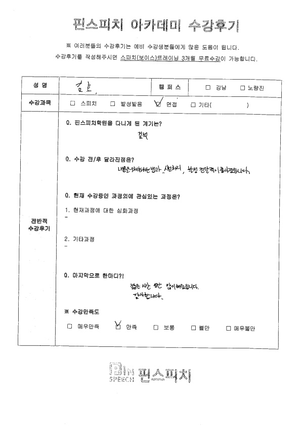 내용을 구체화하는 법과 시선처리, 발성 전달력이 좋아졌습니다.
