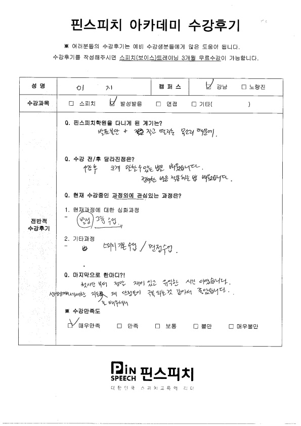 수강 후, 정확한 발음 적용하는 법 배웠습니다.