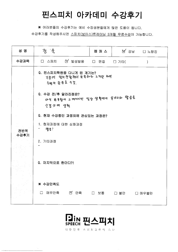 수강 후, 정확한 발음 …