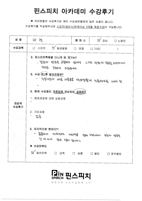 꼼꼼하게 피드백을 많이 해주셔서 발성발음을 할 때마다 많은 도움이 됩니다.