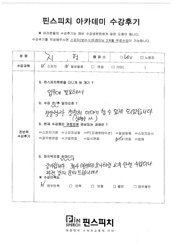 전달력과 천천히 이야기 할 수 있게 되었습니다.