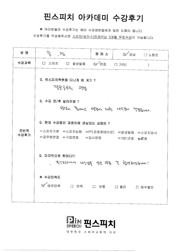 핀스피치에서 자신감을 얻은 만큼 꼭 합격하겠습니다!