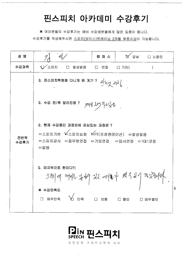 스피치에 재미를 붙일 수 있는 계기가 될 수 있어 좋았습니다.