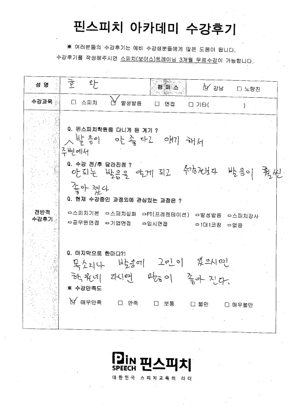 목소리나 발음에 고민이 있으시면 학원에 다니면 많이 좋아진다.