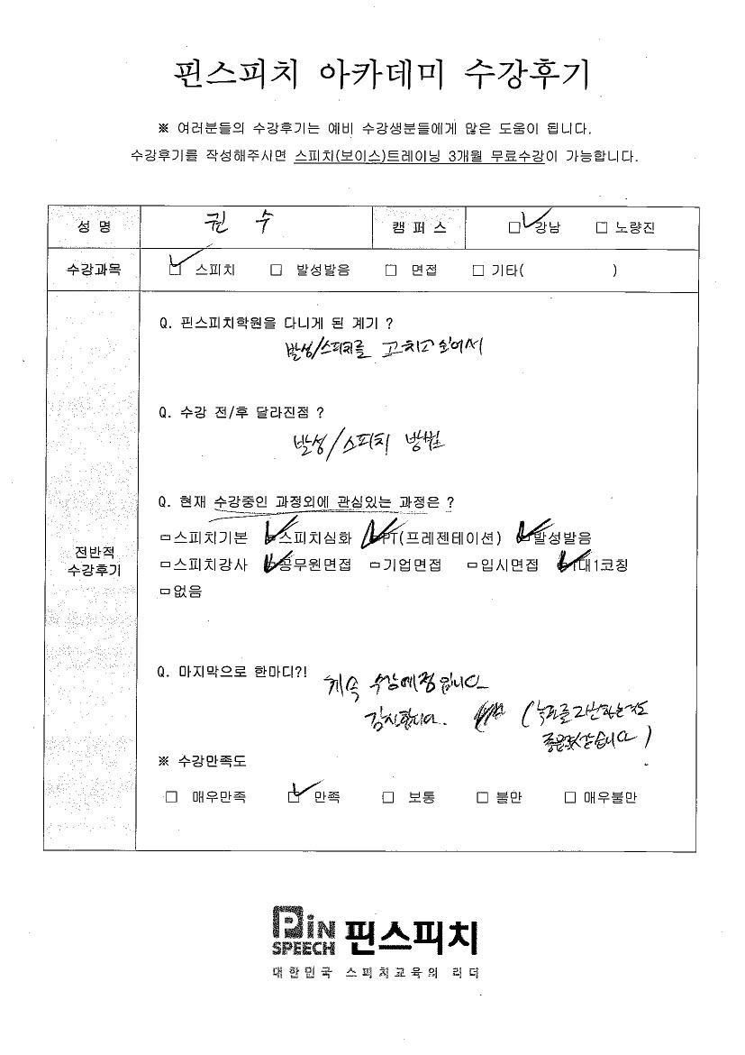 스피치 실력이 매우 향상되었습니다