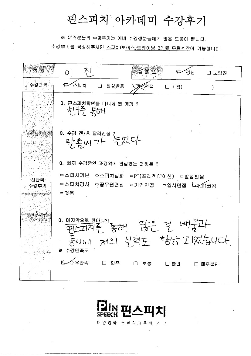 수강을 통해 말솜씨가 늘었습니다.