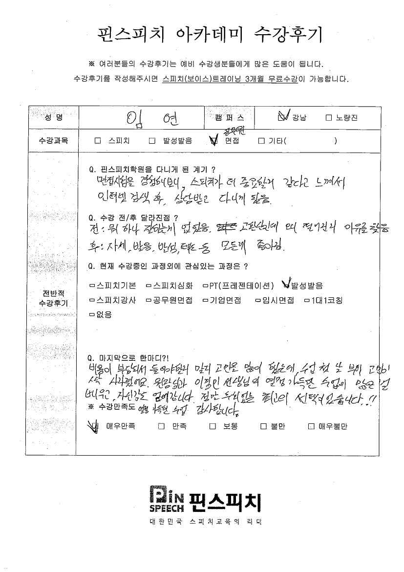 자세, 발음, 발성, 태도 등 전반적인 부분에서 좋아졌습니다.