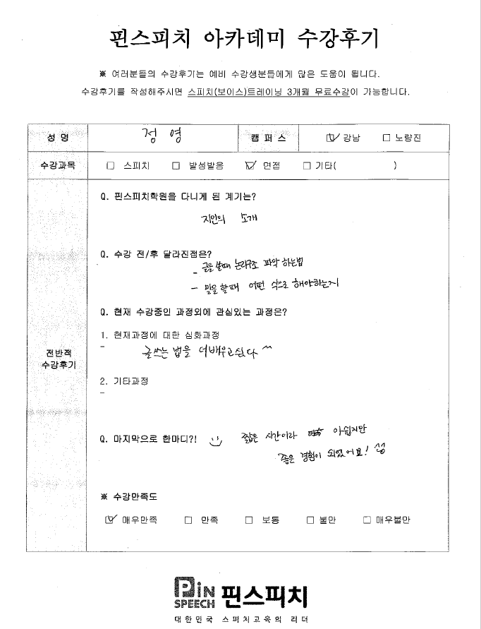 핀스피치를 다니면서 …