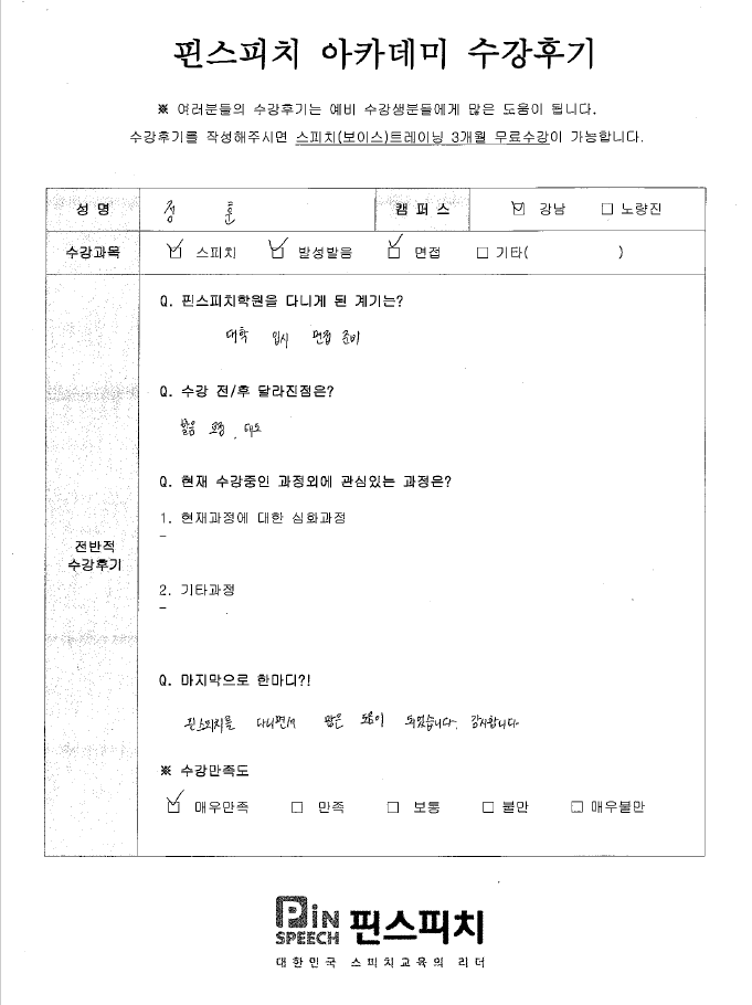 핀스피치를 다니면서 많은 도움이 되었습니다