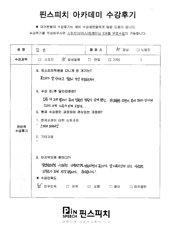 목소리가 잘 나올 수 있게 되고 자신감을 되찾을 수 있게 된것 같습니다. 감사합니다!